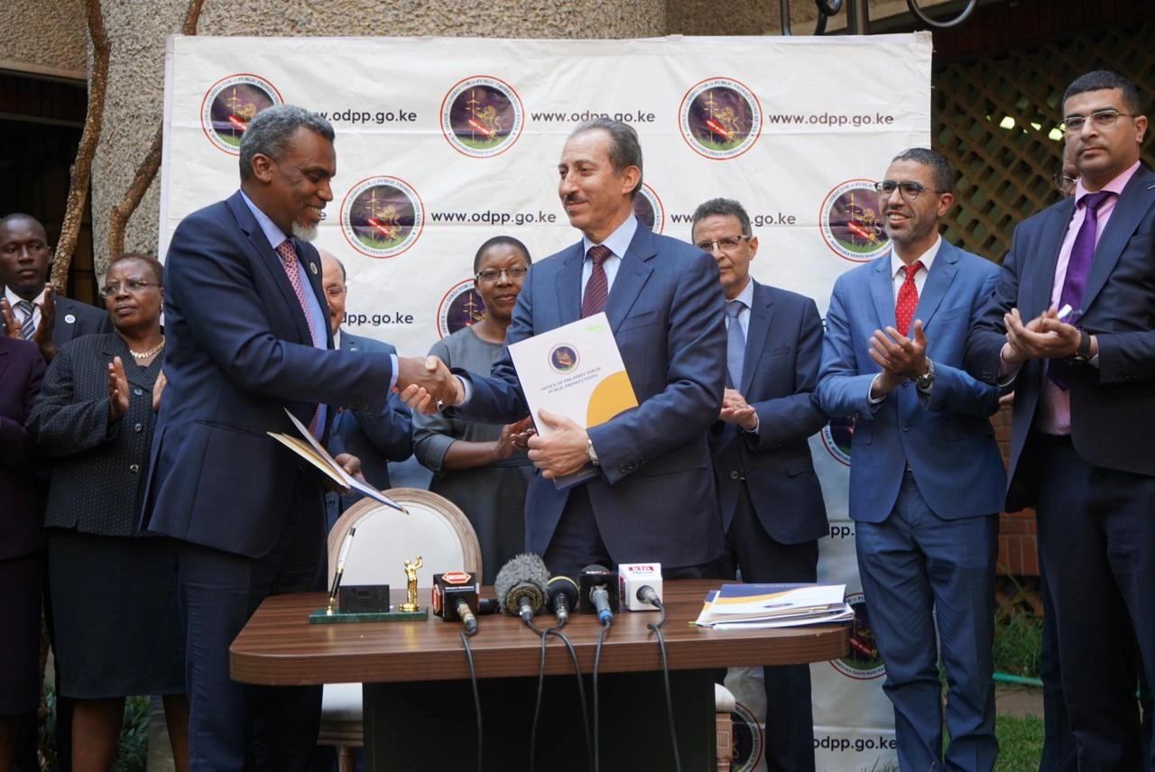 وقع كل من مدير النيابة العامة بجمهورية كينيا، نور الدين محمد حجي، والوكيل العام للملك، رئيس النيابة العامة، الحسن الداكي، الثلاثاء، مذكرة تفاهم تهدف إلى التعاون الشامل بين النيابتين بكل من جمهورية كينيا والمغرب، ولا سيما في مجال العدالة.