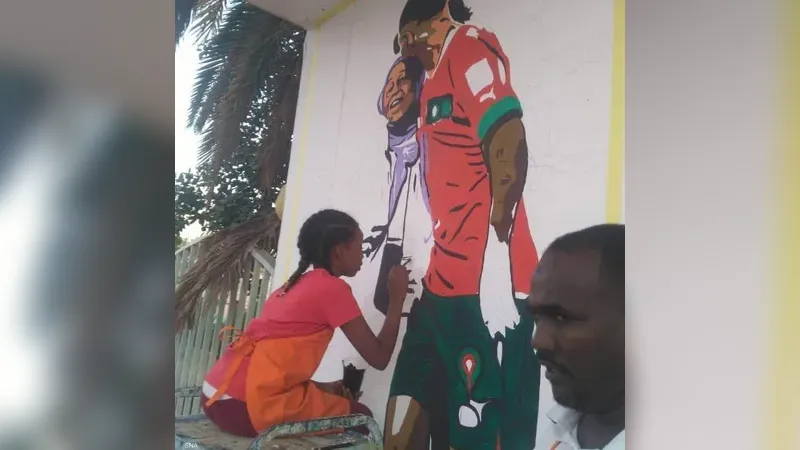 السودان.. جدارية تجسد إنسانية النجم المغربي بوفال رفقة والدته