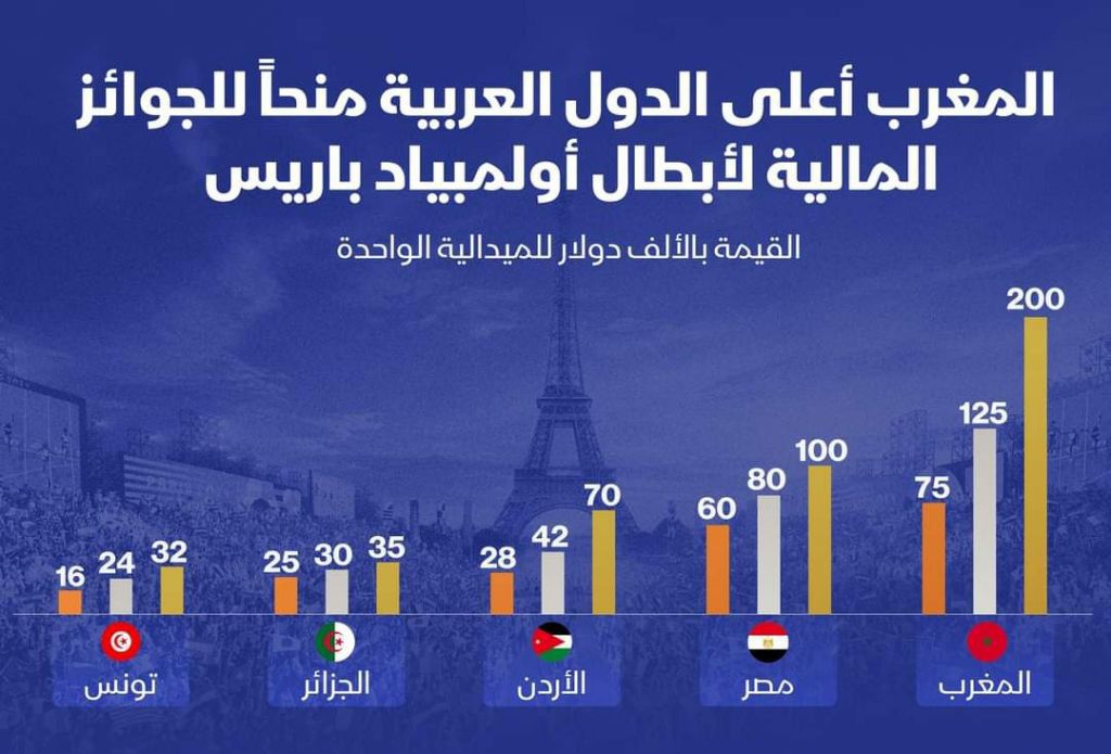 في سابقة هي الأولى من نوعها، أعلنت المملكة المغربية عن مكافآت مالية هي الأعلى بين الدول العربية للرياضيين الحاصلين على ميداليات في أولمبياد باريس 2024، مما يعكس اهتمام المملكة البالغ بتطوير ودعم الرياضة على كافة الأصعدة.